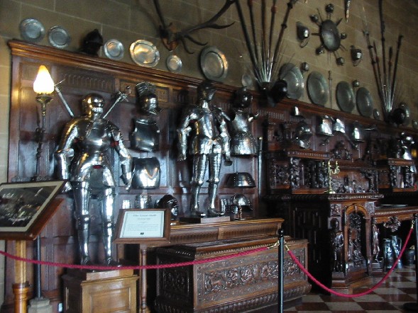 An armor collection in the Great Hall in Warwick Castle